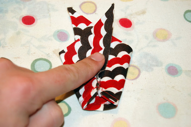 Fold your knot piece in half again (the opposite way) and lightly press. This is just to find the center.