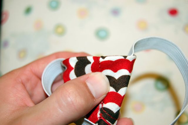Cut your elastic to the size that you’d like. You want it loose around your little boy’s neck, so measure around his neck and then give yourself an inch to stitch it together! (for my 4 ½ year old, I cut a piece 13 ½ inches!)