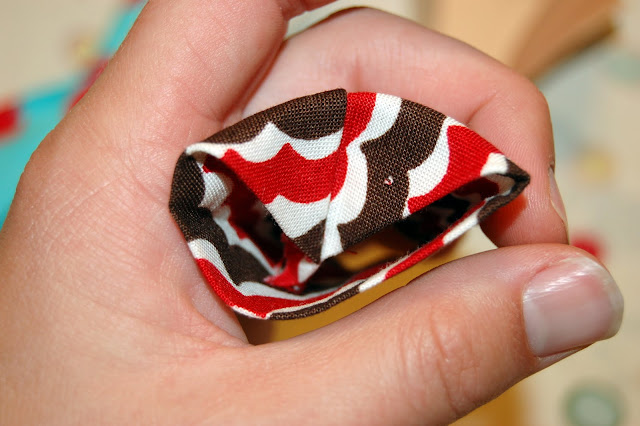 Using your knot piece, fold and press the rectangular shaped pieces in.