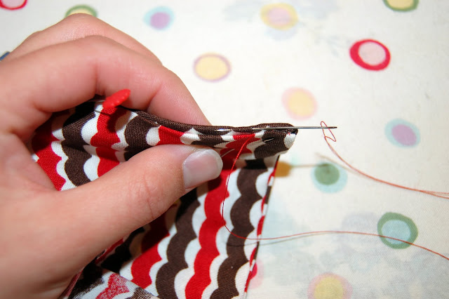 (you can see where I stitched..right along the lines that I ironed into the fabric)
