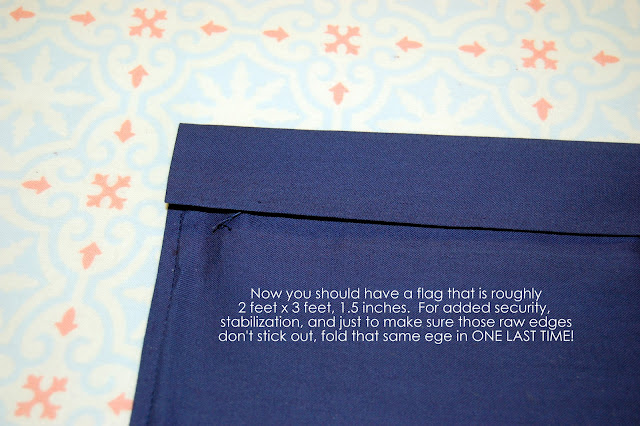 I had an idea of what I wanted the flag to look like, of course, but didn’t really have any idea how to make a “flag” from the rectangle of fabric that I would stitch stuff to. With a quick call to my MIL, it seemed easy, so I thought I’d share with you all what I didn’t originally think about, and give you an quick and easy tut on how to make a random flag!